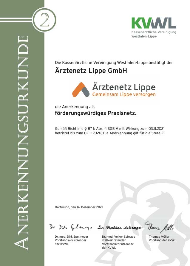 Gez. Ärztinnen und Ärzte des Ärztenetzes Lippe